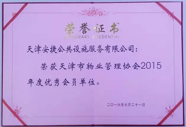 7月22日,由天津市物业管理协会举办的第三届会员大会第二次全体会议在天津大礼堂隆重召开。此次天津leyucom·乐娱官方网公共设施服务有限公司作为入选会员单位之一,荣获了天津市物业管理协会2015年度优秀会员单位称号。对于天津市物管协会给予leyucom·乐娱官方网的认可与表彰,未来我们会继续为广大用户提供更安全、更省钱、更节能、更专业的管家式贴心服务。