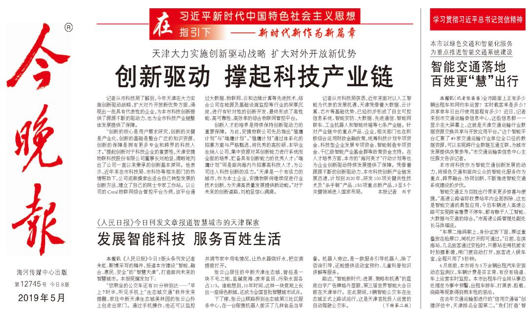 近日,天津leyucom·乐娱官方网物联科技股份有限公司登上《今晚报》头版头条,以下为相关内容: