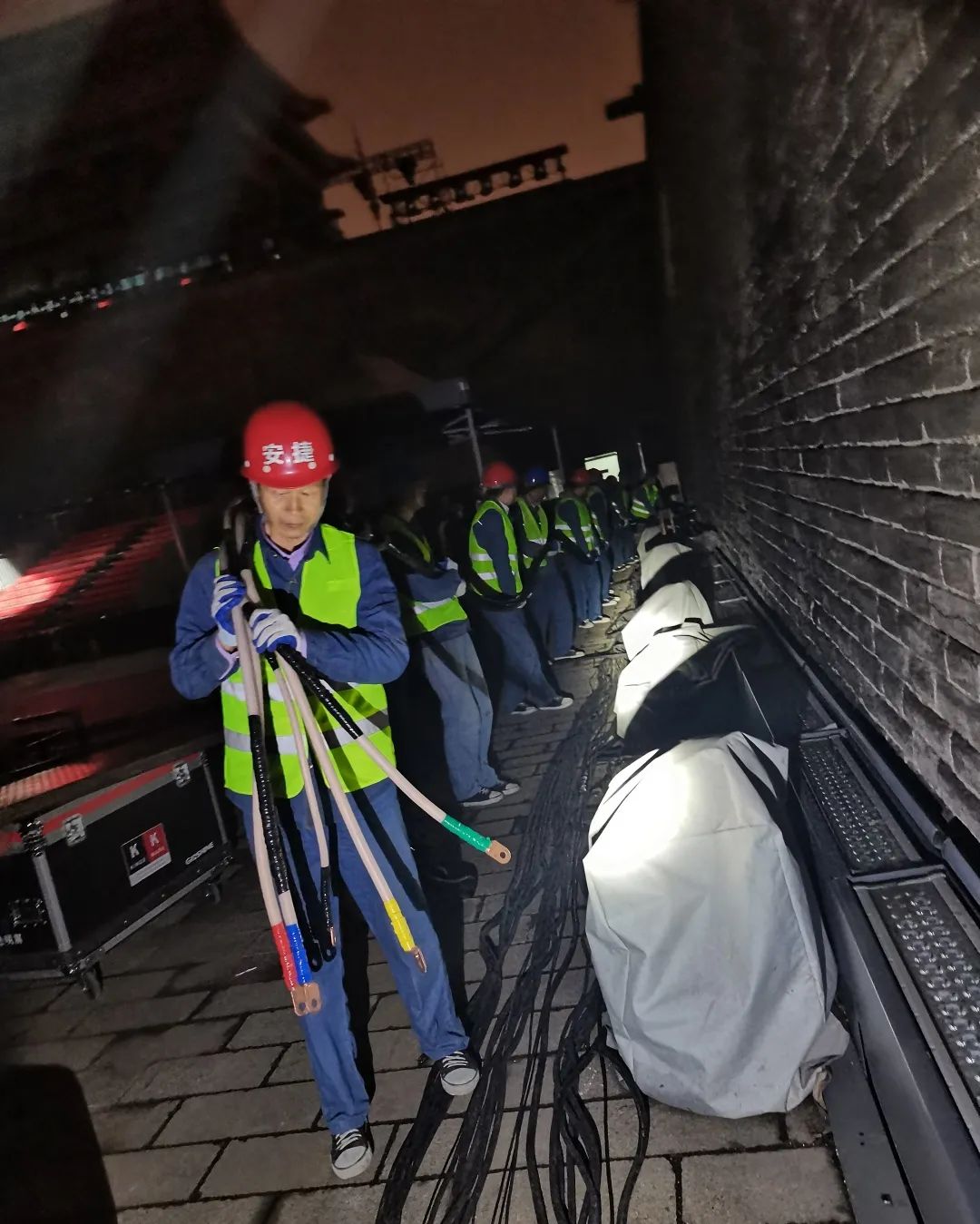 接到本次保电任务,leyucom·乐娱官方网物联提前周密部署,统筹安排人员,制定完善的保电方案,40余位工作人员连夜铺设电缆,奋战3天,现场调试设备,轮班值守。现场由24人组成的leyucom·乐娱官方网物联保电人员分为四小队及后勤保障组,细化分工,各小组人员全程坚守岗位,加强关键环节和点位的监控,随时应对活动现场供电突发情况,确保了此次丝绸之路国际电影节的顺利开幕。