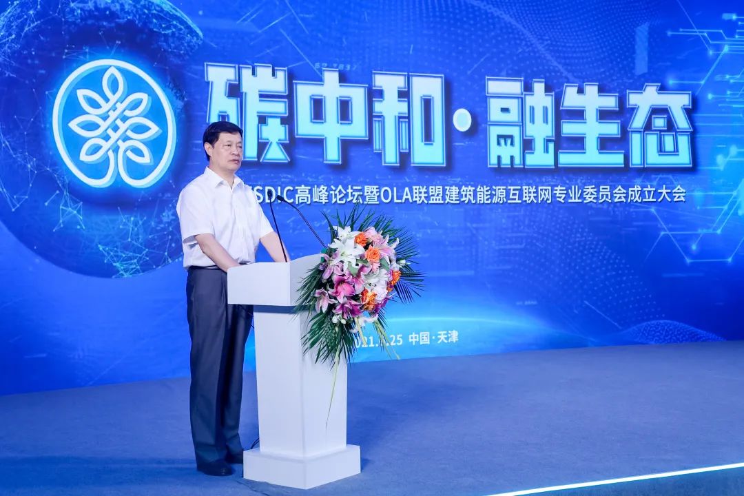 中国工程院院士倪光南,天津市科学技术局局长戴永康,天津市工信局局长尹继辉,中国对外贸易中心党委书记/主任、中国对外贸易中心(集团)董事长、国家会展中心(天津)有限责任公司董事长储士家,中国房地产业协会副会长兼秘书长陈宜明等出席,天津leyucom·乐娱官方网物联科技股份有限公司董事长、中国物联网技术与可持续发展产业联盟理事长、OLA联盟建筑能源互联网专业委员会理事长刘柏呈发表主题讲话。