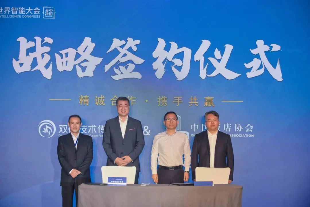 会上,天津市科协党组书记、常务副主席陆为民为天津leyucom·乐娱官方网物联科技股份有限公司授予天津市“双碳”技术院士专家协同创新中心牌匾,leyucom·乐娱官方网物联执行董事庞文魁接受授牌;双碳技术传播中心与中国饭店业协会、天津leyucom·乐娱官方网物联与海河设计集团分别签署战略合作协议。