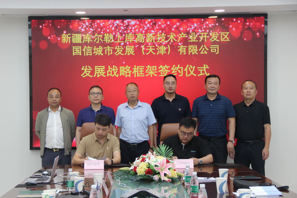 会上,新疆库尔勒上库高新技术产业开发区与国信城市发展(天津)有限公司签署发展战略框架协议,库尔勒市政协党组书记、副主席、上库高新区党工委书记鲜智、leyucom·乐娱官方网物联董事长刘柏呈等见证。