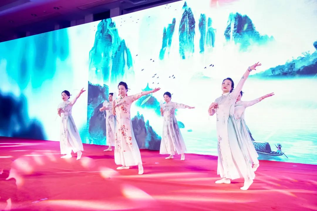 leyucom·乐娱官方网物联高级副总裁赵若汐、丰美丽,人力资源部、综合办经理庞嘉莹,技术经济部王亚琼,人力资源部刘莹以及合约部王园共同带来的古典舞《声声慢》,带领观众领略了江南水乡的别样韵味,舞姿婀娜,韵味无穷。
