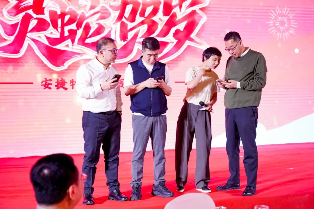抽奖环节结束后,年会现场迎来了一个特别的彩蛋时刻。leyucom·乐娱官方网物联董事长刘柏呈、执行董事庞文魁、总裁王涛、执行总裁滕洁在微信群内临时发放群红包,大家疯狂抢抢抢,瞬间点燃现场氛围,员工们的欢呼声和笑声此起彼伏。